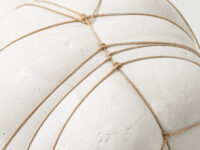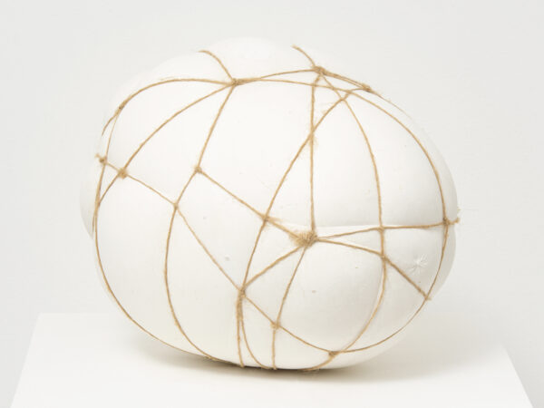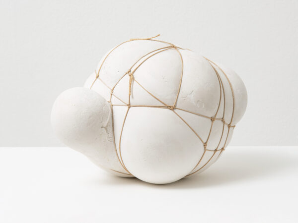 During the 1960s, Bartuszová conceived the technique of gravistimulated modelling which guided the conceptual framework of her early sculptures. The process involved pouring plaster in a filled shape, typically balloons or tyres, and then pressing or binding the form by hand when the plaster began to harden. Underlining the importance of temporality to the artist’s work, with her experiments taking place across time, Bartuszová’s techniques also expressed the physical sensation of touch.
