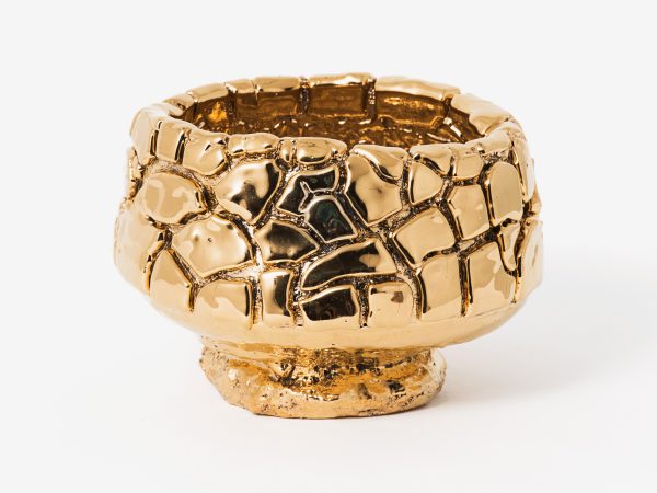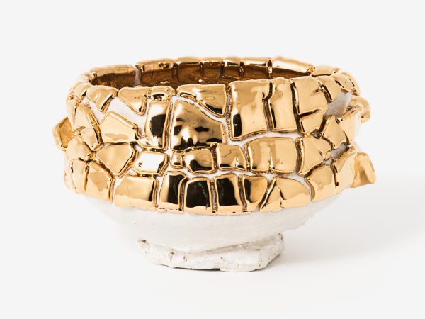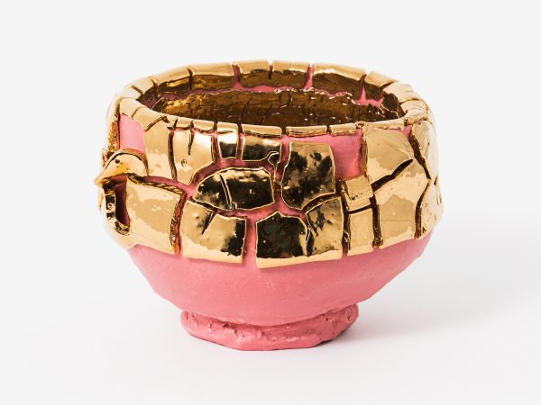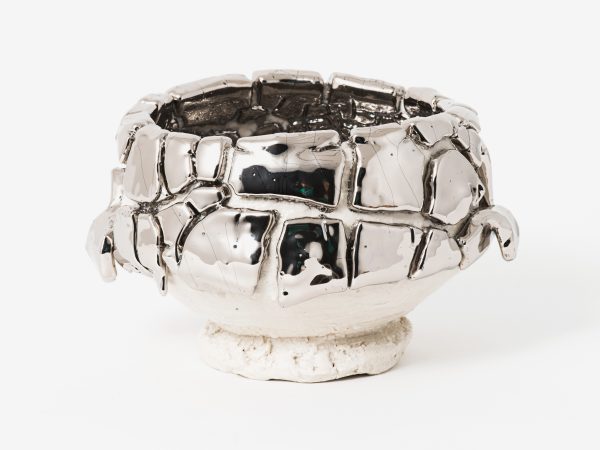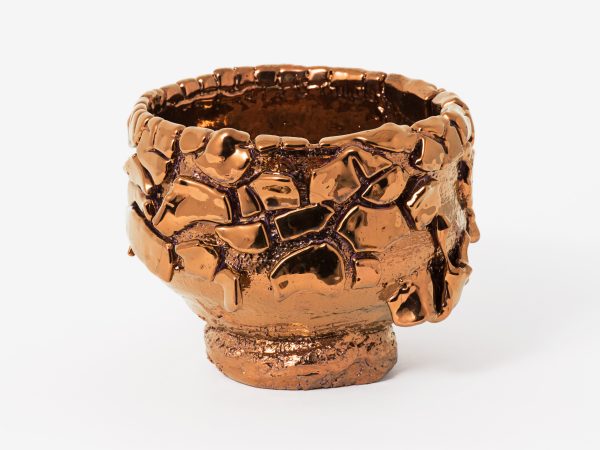 Kuwata’s practice is firmly rooted in Japanese history and aesthetics. The characteristics of the Japanese philosophy wabi-sabi, which focuses on imperfect and incomplete beauty, including asymmetry and asperity, are all evident in Kuwata’s work. Born in Hiroshima, but removed from the aftermath of World War II, Kuwata is offering a contemporary view of postwar Japanese anxiety as well as demonstrating a correlation between Japan’s recent natural and social disasters. The natural world plays an active role in Kuwata’s practice, with bursting stones and broken glazes acting as metaphors for erupting volcanoes and earthquakes, engendering beauty through destruction.