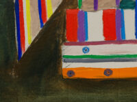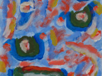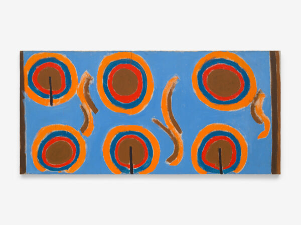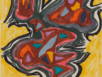 Parsons’ paintings reflect a desire to convey a sheer energy; she was particularly interested in the principles of the auratic, and what she termed the new spirit. Her instinct for colour was something cultivated during years of travel; her trips to Japan, Africa and Mexico greatly inspired her painterly practice. Parsons’ titles often hint at the subjects included in her works, which the artist’s abstract configurations alone do not communicate. Found Forms (1978), for instance, flatly renders an assortment of shapes using thick bands of individual colour that become hand-sized objects upon discovery of the title. The bullseyes that make up Circles (1967) are also surrounded by abstracted curves painted in the same tone, part and whole seen within a single frame.