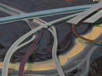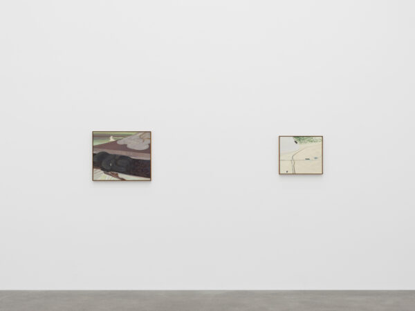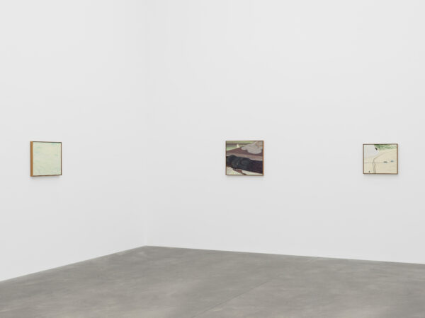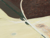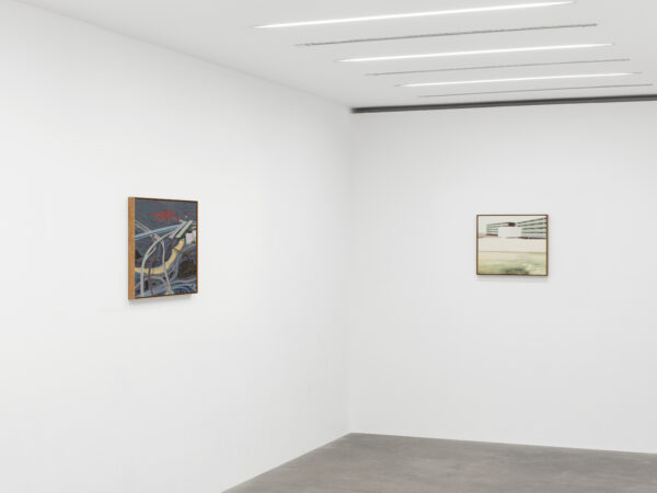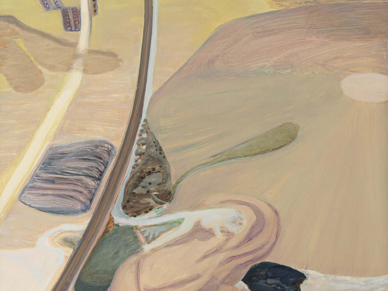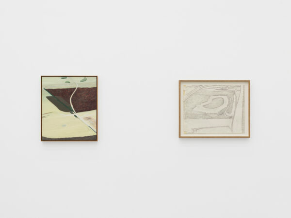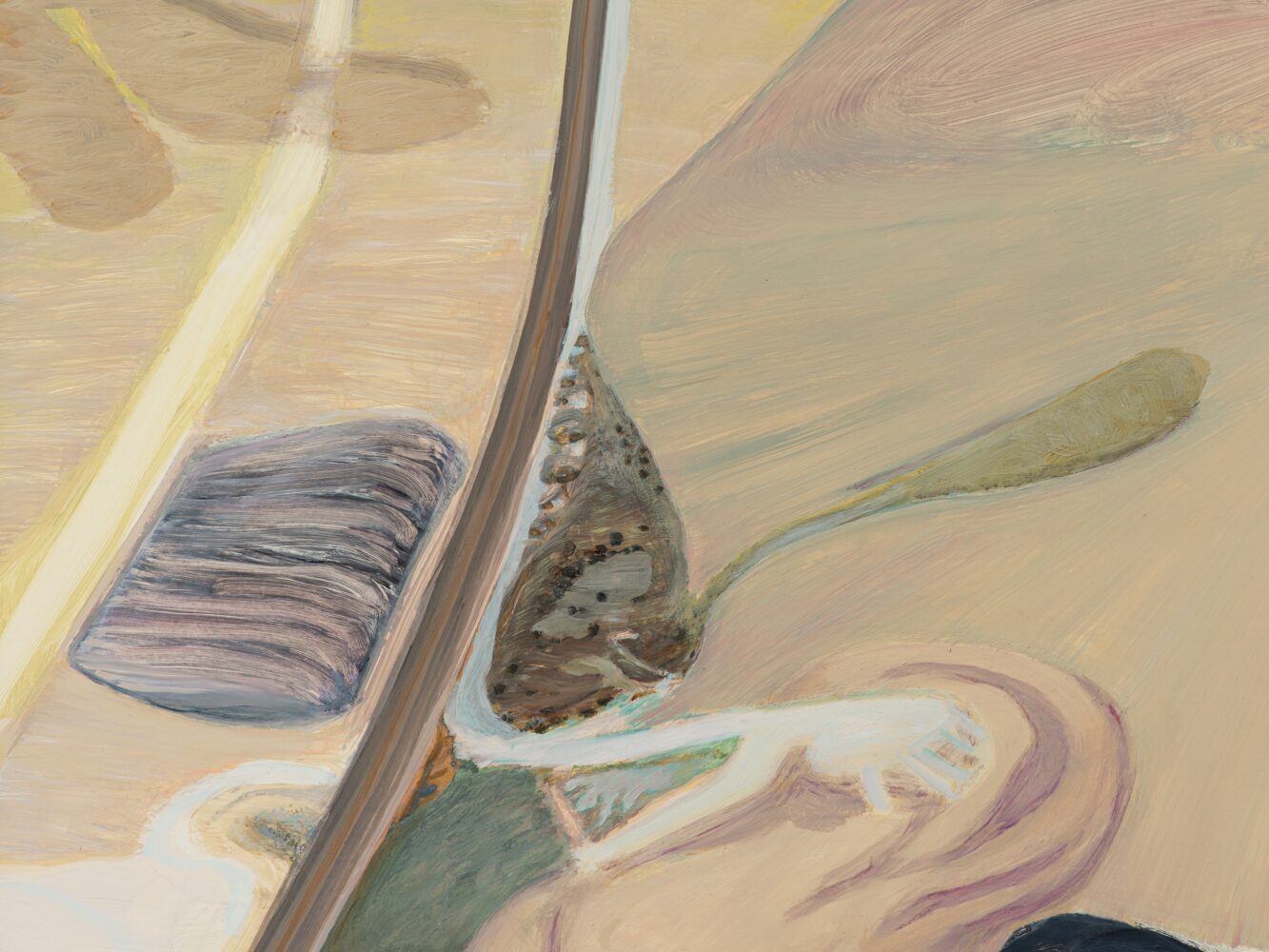 Despite (or due to) these compositional factors, an unease remains in these paintings – indeed, it intensifies. In works such as River, Roads (2013) or Forest and Road (1998), assumed infrastructural logic slowly reveals itself to be improbable and inconsistent. In this way, Rhodes’s pseudo-realistic scenes appear familiar yet unknown, mundane yet mysterious. And while the paintings can certainly be discussed within an environmental, sociological or political context, it is their restlessness and psychological charge that perhaps remains most resonant. Rhodes was known to speak of her landscapes as self-portraits.