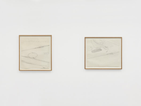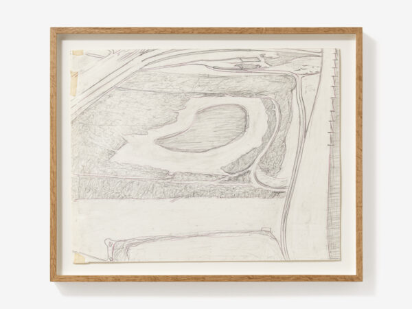 Writing on this element of Rhodes’s work, the critic Tom Lubbock cited environmental theorist Marion Shoard’s identification of ‘edgelands’: ‘Between urban and rural stands a kind of landscape quite different […] Yet for most of us, most of the time, this mysterious no man’s land passes unnoticed: in our imaginations, as opposed to our actual lives, it barely exists.’ Rhodes similarly identified blind spots and occlusions in our consciousness. ‘Looking at things from above is detachment’, she once told curator Lynda Morris. ‘To have an opinion or view, you have to be outside society or your own particular group’.