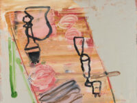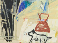 Oxlade’s cast of recurrent characters for his paintings were the poetry of his everyday life: coffee pots, scissors, lemon squeezers, kitchen knives, paintbrushes, anglepoise lamps, easels and his muse Wylie. For Oxlade, art needed to become more modest, ethically rooted and closely connected to everyday life. Artist Clare Woods highlights Oxlade’s achievement in making ordinary objects ‘feel unfamiliar and create a distance to really see them’, adding that ‘we need this limited yet familiar simplicity and directness to try to understand who we are.’ Jennifer Higgie writes, ‘in many ways, Oxlade’s drawings and paintings embody what we already know: that once we have lived with an object and it moves us, however humble, it becomes almost mystical’. As Oxlade wrote, he believed that art’s role is to transform the mundane: ‘when it succeeds, it moves life up a gear, its effect is to affect; it transcends daily life’.