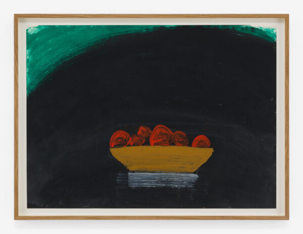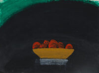 Oxlade emerged in the 1950s as part of the ‘School of London’, a prominent group of London-based painters alongside Frank Auerbach and Leon Kossoff. Taught by David Bomberg, Oxlade remained true to Bomberg’s values of authenticity in brush marks, developing a practice grounded in direct engagement with the physical world. Domesticity and ritual are central to his practice. His work is inextricably entwined with daily life, which he shared with his wife of 57 years, the artist Rose Wylie. They met as art students at Goldsmiths College and married within a year, living in London and Canada, before eventually settling in Kent until Oxlade’s death in 2014, aged 85. The award-winning documentary, Rose & Roy, an intimate portrait of Oxlade and Wylie’s daily life, directed by Adolfo Doring and Claudia Baez, was first shown at The New York City International Film Festival in 2015.