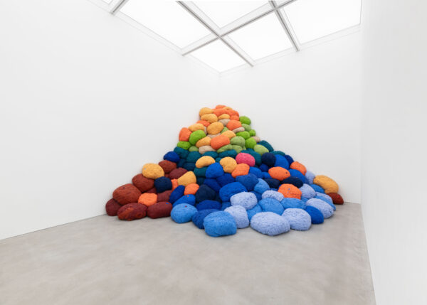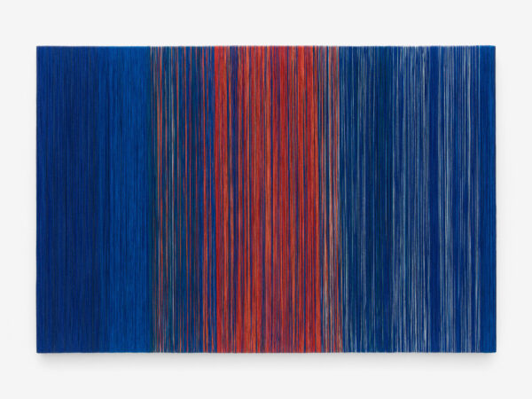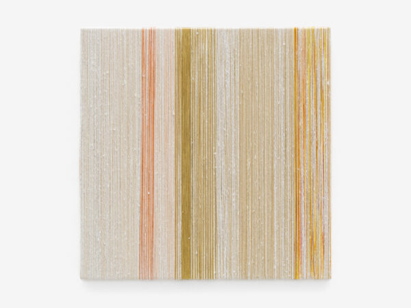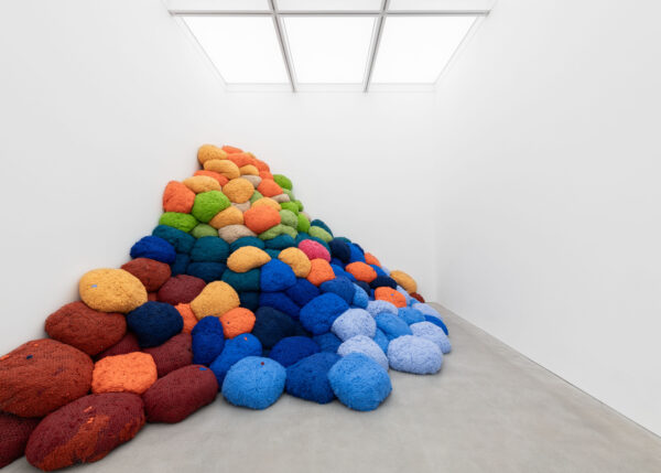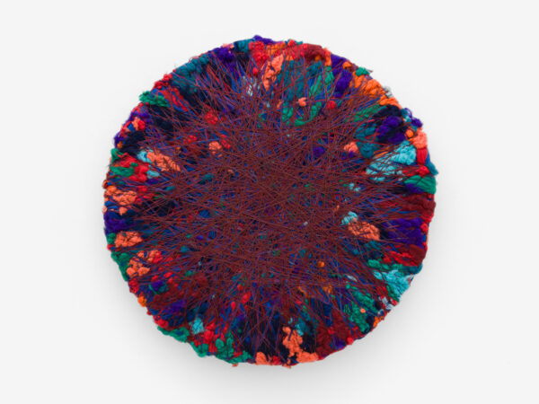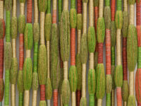 For ‘Infinite Potential’, Sheila Hicks will exhibit different series of new work which make up her extensive vocabulary. For the first time in London, Hicks will create an installation of Talking Sticks, wall based batons made from bamboo and multicoloured pigmented fibre placed as if in conversation with each other. Also on view will be Mirage in the Oasis from Hicks’ iconic Lianes series; where linen, cotton and silk cordes hang as vines of colour including avocado green, russet orange and gold. New Comets, including Scarlet in Orbit and Coincidence, will burst with colour alongside the consistent presence of Minimes – small-scale weavings made on a repurposed frame-turned-loom; metaphorical diaries of the artist’s adventures which often incorporate found objects such as seashells, stones, bones and razor clams. New thread paintings with titles such as Sunset Contained Forever will be exhibited alongside Bas Reliefs. These include He, She and More and The Shortest Route to Mercy which reflect Hicks’ new direction and continued experimentation with warp and weft, as well her infinite spectrum of colour.