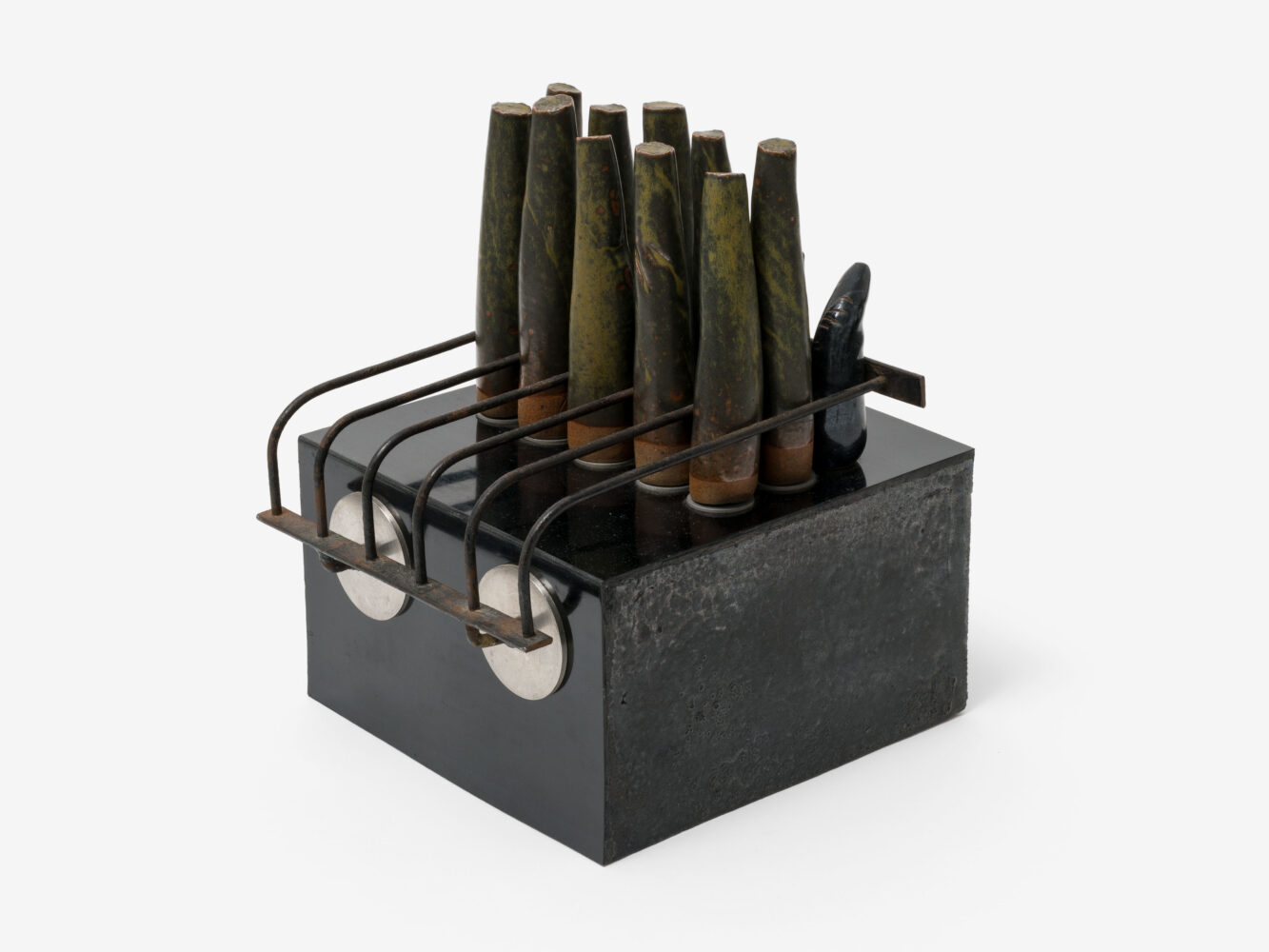 Donald Locke frequently drew upon the folklore, myths and poetic aspects of Guyana. Inspired by natural forms and the human body, he explored issues around history and identity. The Frieze Masters presentation spans 26 years of Locke’s career, including his renowned Plantation Series (1972-76). These sculptural metaphors for the plantation system of labour, wealth and social structure question the system whereby one group of people are kept in economic and political subjugation by another. Locke grew up at a time when Guyana was still a British colony, and at the time was defined by a plantation system. Political and social observations became central to Locke’s practice over the next five decades of his work.